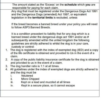 We are both fully insured to work with dogs that are classified under the Dangerous Dogs Act as per the legal requirements stated below.